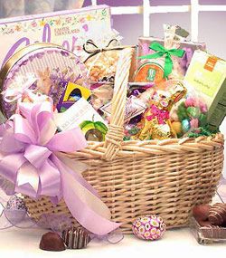 Deluxe Easter gift basket! Filled with chocolate galore as well as traditional favorites, this basket of goodies will delight the recipient with loads of Easter joy. Contents include: White Chocolate Peanut Butter Filled Chocolates Gift Box filled/ Candies Milk Chocolate candy Spring Butter Buttercrunch Caramel Corn Butter Shortbread cookies and more assorted spring gift basket cookies