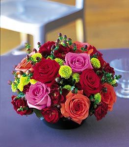 Bring in rave reviews while accenting a special event. This beautiful centerpiece of orange, red and pink roses arrives ready to engage family and friends. Same-day delivery