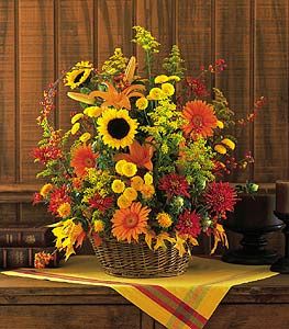 With gorgeous fall colors of yellow, rust and orange, this spectacular arrangement captures the essence of this colorful season