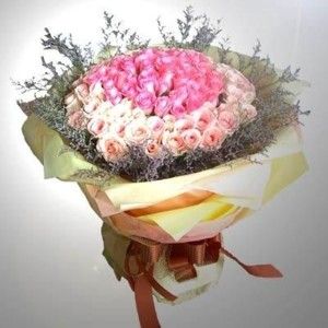 In this 99 roses bouquet champagne roses embrance pink roses so tight! All words seem to be redundant when receiving such fantastic gifts!