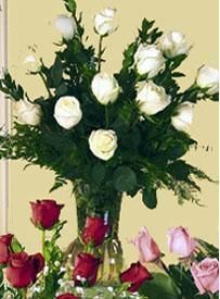 Dozen white roses arranged with Mytle, plumosus and leatherleaft